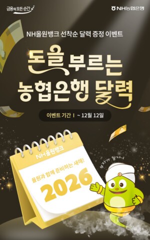 NH농협은행은 연말을 맞아 고객 성원에 보답하고자 오는 12월 12일까지 ‘2026년 농협은행 달력 증정 이벤트’를 진행한다고 25일 밝혔다.이번 이벤트는 NH올원뱅크 이벤트 페이지에서 세 가지 디자인 중 원하는 달력을 선택해 신청하면 되며, 총 2만5000명에게 선착순으로 제공된다. 신청한 달력은 고객이 입력한 주소로 무료 배송된다.이벤트에 대한 자세한 사항은 NH올원뱅크 이벤트 페이지 또는 가까운 농협은행 영업점, 고객행복센터를 통해 확인할 수 있다.농협은행 관계자는 “새해의 풍요와 행운을 기원하는 마음을 담아 달력 증정 이벤트