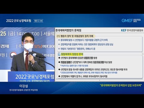 - [굿모닝경제포럼 영상] 김규석 고용부 국장 "중대재해처벌법, 예산 편성보다 이행이 중요"