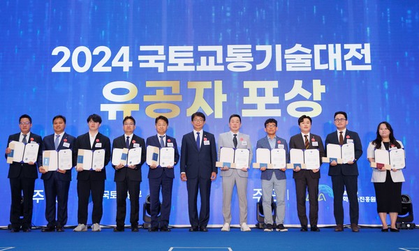 국토교통부 박상우 장관은 16일 '2024 국토교통기술대전'에 참석해 기념사를 하고 있다. 박 장관은 기념사에서 "오늘 기술대전에서 국토교통의 ‘미래를’ ‘미리’ 만나볼 수 있다"며 "국제 사회에 발 맞춰 우리 국토교통 R&D도 산업 전반을 변화시킬 수 있는 핵심기술을 적극 개발하고, 미래 경제의 주도권을 선점할 수 있는 혁신과 도전을 시도할 때"라고 말했다. [사진=국토부]