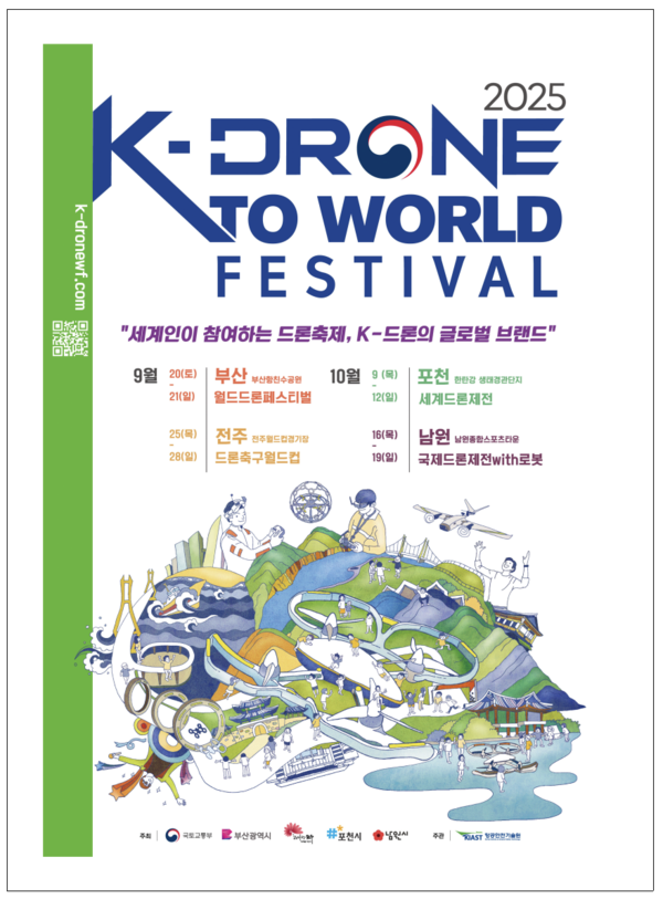 국토교통부(장관 김윤덕)가 오는 20일부터 한 달간 부산, 전주, 포천, 남원 등 주요 도시에서 ‘K-Drone to World Festival’을 개최한다고 17일 밝혔다. 이번 행사는 국내 드론 기술력을 지역 특성과 결합해 선보이는 릴레이 형식의 대규모 드론 레저·스포츠 축제로, 산업 발전과 지역 관광 활성화를 동시에 겨냥했다.